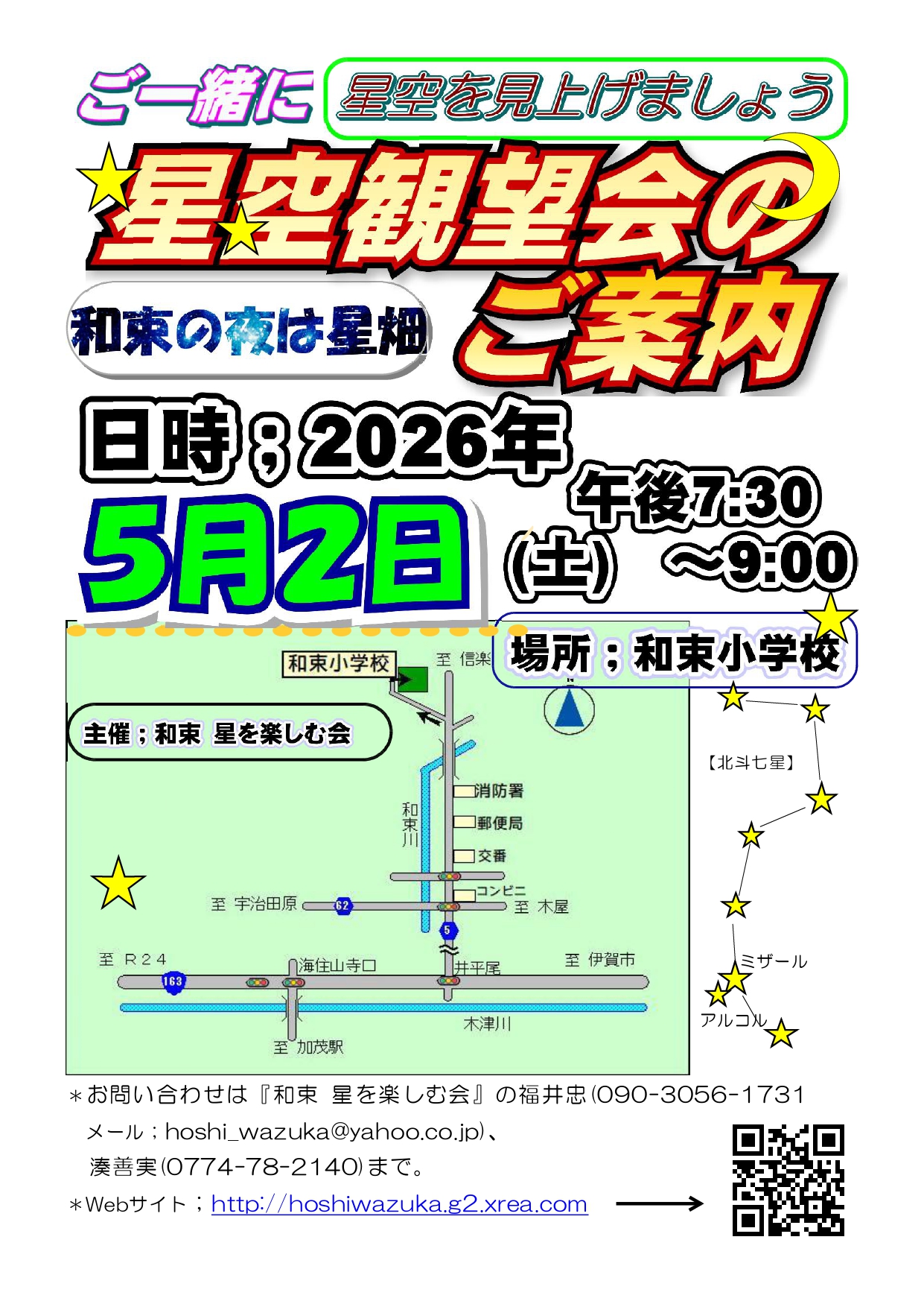 メール:hoshi_wazuka@yahoo.co.jp、湊善実(0774-78-2140)まで